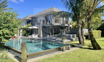 Découvrez cette magnifique villa, située dans un domaine golfique sur la côte est de l’Île Maurice, niché entre les montagnes verdoyantes et le lagon cristallin. Ce domaine sécurisé s’étend sur 213 hectares de jardins tropicaux et 6 km de rivage et comprend deux hôtels 5* aux prestations haut de gamme et un parcours de golf de 18 trous. Cette superbe villa de 445 m² est située sur un terrain en hauteur de 2079 m² et tout proche d’un jardin arboré possédant son propre ponton et un accès direct au lagon. Elle a été pensée pour épouser au mieux la topographie naturelle du site et orienter toutes les pièces vers le lagon et l’Ile aux Cerfs. À l’étage vous trouverez un beau salon lumineux et aéré avec une cuisine ouverte donnant sur une terrasse et une grande piscine à débordement, un coin barbecue et bar, un salon-télé avec espace bureau ainsi qu’une chambre à coucher en suite. Au niveau inférieur, trois chambres spacieuses en suite offrant beaucoup d’intimité s’ouvrent sur le jardin paysager. La villa compte également plusieurs espaces de rangement. Élégamment décorée dans un style tropical chic, elle saura à coup sûr vous séduire ! Cette acquisition vous donne accès au permis de résidence permanent. Contactez-nous dès maintenant pour plus d’informations. Notre équipe se fera un plaisir de vous accompagner dans votre projet d'acquisition.