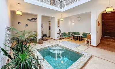 exceptionnelle propriété à la palmeraie, 10.000m² de terrain 1500m² habitable, un parc ancien et luxuriant. des plafonds de pus de 7m pour les réceptions, plusieurs réceptions, salle a manger avec cheminée donnant sur un tres grande cuisine. marbre au sol et zeliige, toute la menuiserie en noyer magnifiquement travaillé. chauffage central, climatisation gainable, salle de hamam. toutes les suites sont aux dimensions généreuses et aux salles de bains finement travaillés.perrotta la grande palemraie Présenté par BARNES MARRAKECH agence immobiliere marrakech - immobilier luxe marrakech - vente villa marrakech