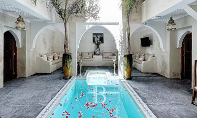 Emplacement exceptionnel sur la route d'Amizmiz, cette résidence de 28 villas à l'architecture moderne, dans un environnement calme et agréable se situe à 10 mns du centre ville. Elle est composée de plusieurs types de villas, de 3 à 5 suites, avec une surface habitable d'au moins 500 m² jusqu'à 1685 m². Chaque villa à l'architecture moderne et épurée dispose d'un jardin avec piscine privée, hammam, salle de cinéma, pièce à vivre spacieuse avec belle hauteur sous plafond. Contactez nous pour en savoir plus! A partir de 750 000 Euros Présenté par BARNES MARRAKECH agence immobiliere marrakech - immobilier luxe marrakech-vente villa marrakech