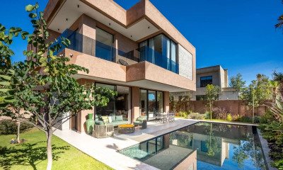 Magnifique villa de prestige au coeur d’un Resort golfique, volumes spacieux et finitions soignées. Cette villa dispose d’un terrain de 1200m2 plus une jouissance de 400m2, offrant une surface habitable de 890m2. Rdc : – 1 grand salon avec cheminée avec salle à manger – 1bureau avec bibliothèque – 1 cuisine équipée – 1 toilette invité 1er Étage : – 2 suites masters avec salle de bain – 2 suites juniors avec salle de bain – 1 pièce de rangement Sous-sol : – 1 cuisine équipée avec salle à manger – 1 salle de cinéma et de jeux – 1 hammam – 1 salon marocain – 1 buanderie – 1 toilette invité – 1 chambre personnel – 2 locaux techniques – 1 cour anglaise avec fontaine en zellige Jardin : – jouissance de 400m2 côté cuisine – Piscine chauffée de 14 m x 6 m avec couloir de nage – palmiers, abricotiers, orangers, citronniers – arrosage électrique avec minuteur Équipements : – 200 m2 de panneaux solaires – double vitrage dans toutes les pièces – 1 portail électrique – 8 caméras à domotique – éclairage piscine – cage d’ascenseur – pompe à chaleur – fibre optique Forte valeur locative