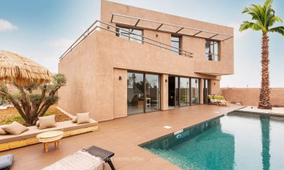 Au Golf d'Asoufid, sur la Route d'Amizmiz. Sur un terrain de 12 000 m², villa de 600 m² avec piscine. Entrée, séjour, salle à manger, salon TV, cuisine équipée (indépendante ou américaine). 1 master avec dressing, 3 chambres et 4 salles de bain. Dépendance : séjour, cuisine d'été avec chambre. Rooftop avec salon et cuisine d'été.Sauna. Hammam. Terrain de tennis. À 20 minutes du centre de Marrakech. Commission 3%TTC acquéreur en sus du prix