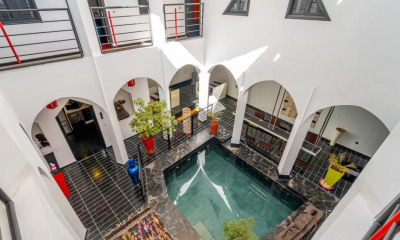 Riad entièrement reconstruit à neuf de 60 m² au sol, situé dans le quartier authentique de Berrima, au cœur de la Médina de Marrakech. Il se déploie sur quatre niveaux et offre un parfait équilibre entre design contemporain et élégance marocaine. Le rez-de-chaussée accueille une chambre avec salle de bain privative, un salon, une salle à manger, une cuisine ouverte moderne ainsi qu’un WC invités. Le premier étage se compose de deux chambres spacieuses, chacune disposant de sa propre salle de bain. Au second étage, une suite familiale réunit deux chambres et une grande salle de bain. L’ensemble est conçu dans un esprit épuré, confortable et chaleureux. Enfin, le riad abrite une terrasse entièrement aménagée : cuisine d’été, pergola conviviale, espace détente et bassin chauffé, faisant de cet espace un véritable lieu de vie à ciel ouvert. Un riad moderne, lumineux, aux finitions soignées, idéalement situé et prêt à accueillir ses occupants dans le plus grand confort.