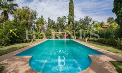 Situé le long du canal de Zaraba sur la route de l'Ourika, VANEAU MAROC, agence immobilière de luxe à Marrakech, vous propose ce projet résidentiel de 6 villas, alliant le luxe et la modernité à une vision et une philosphie écoresponsable. Ce projet haut de gamme construit avec des matériaux durable tel que la pierre ponce et avec une isolation thermique permettant de réduire considérablement la consommation énérgétiques. Les villas de plain pied disposent de 4 chambres avec leurs salles de bains attenantes, un triple séjour, une cuisine équipée avec une buanderie. Des toilettes invités et une chambre de service complètent ces villas au design bioclimatique. Le jardin est orienté plein sud et une belle piscine de 16m x 4m vous offrira des moments de détente avec une vue imprenable sur les montagnes de l'Atlas. Les superficies habitable varient de 229m² à 236m² tandis que les superficies des terrains vont de 1100m² à 1500m². Ce projet est prévu pour le deuxième trimestre de 2026 avec un plan de paiement suivant les avancées des tarvaux. Si vous êtes à la recherche d'un produit de grand luxe avec un sens écoresponsable, contactez VANEAU MAROC, agence immobilière de luxe à Marrakech.