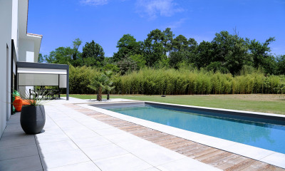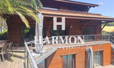 Villa bénéficiant d'un emplacement unique donnant sur le Golf International d'Arcachon, cette contemporaine de 240m² a été conçue selon les codes du luxe et réalisée avec des matériaux de haute qualité offrant ainsi un confort de vie optimal. Elle se compose d'un vaste espace de vie avec une très belle hauteur sous plafond, une grande cuisine ouverte équipée et son arrière cuisine. L'ensemble de cette pièce volumineuse profite d'un ensoleillement maximal grâce à ce côté traversant qui donne un côté outdoor/indoor. Au rez de chaussé vous disposerez de deux suites avec dressing et salle de bain. A l'étage, nous avons deux autres suites donnant sur une grande terrasse avec vue dégagée. Une piscine de 10x3m chauffée, une terrasse abritée et de beaux espaces verts préservés des regards. Vous profiterez également d'un accès direct au parcours. Un garage et un emplacement pour 4 véhicules complètent l'ensemble. (2.86 % d'honoraires TTC à la charge de l'acquéreur.)