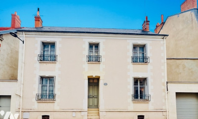 A Tours, dans le quartier Blanqui-Mirabeau, Une maison de ville avec jardin et garages. Depuis une rue calme, la maison est en partie cachée des regards par un magnolia. Une grille sur un muret en pierre couvert d'enduit protège la cour, et l'accès se fait par un portillon en fer soutenu par deux piles en briques. Le bâtiment, s'élève sur deux niveaux dont un sous combles, surmontés de balustres en pierre. La façade enduite est rythmée de baies rectangulaires, et un perron de quelques marches mène à la porte d'entrée. A l'arrière, le jardin s'étend jusqu'à une impasse qui dessert deux dépendances à usage de garages. La maison est aujourd'hui divisée en un appartement au rez-de-chaussée, deux chambres, dont une avec salle de bains et toilettes et une avec bureau ou garde-robe attenants au premier étage, et deux studios au deuxième étage. Une cave s'étend sous la maison. L'ensemble pourrait être réaménagé pour redevenir une habitation familiale. Des travaux sont à prévoir, en fonction des projets envisagés.