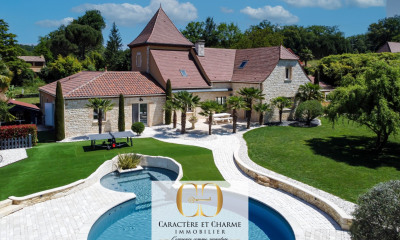 GOURDON (46300) - Superbe propriété de caractère avec piscine sur 13,5 hectares de terrain. Prix euros 879.000 FAI à la charge du vendeur. Entre Sarlat et Cahors, se trouve cette belle propriété composée d'une maison très spacieuse avec deux habitations, une grange, une piscine chauffée et un pool house située sur 13,5 hectares de terrain dans un environnement vert et paisible. Cette propriété a été entièrement et très qualitativement rénovée en 2000. C'est une maison confortable avec chauffage central au gaz par plancher chauffant et insert à bois, double vitrage partout et fibre optique. Le bâtiment se compose de deux habitations indépendantes mais connectées. Le bâtiment principal se compose de deux étages avec une nouvelle cuisine ouverte entièrement équipée (2024) au premier étage avec suffisamment de rangement. La cuisine donne accès à la terrasse extérieure (42m2) par des portes-fenêtres. La cuisine est reliée à la salle à manger et au spacieux salon (total 70,5m2) avec insert à bois. Au même niveau se trouvent 2 chambres (12m2 et 11m2), une salle de bain et un wc. Un étage plus bas, au rez-de-chaussée, se trouvent 3 chambres (26m2, 16.8m2 et 16.7m2), dont la suite parentale avec salle de bain attenante, une salle de bain séparée et un wc séparé. Toutes les chambres ont accès à la grande terrasse extérieure et au jardin par des portes-fenêtres créant une agréable connection avec l'extérieur. Dans la tour se situe une chambre (18,2 m2) qui relie les deux habitations. Bien entendu, les elles ont également leur propre entrée séparée depuis l'extérieur. La seconde habitation se compose, au rez-de-chaussée, d'un salon confortable (40m2) avec cheminée, d'une cuisine (20,5m2) avec salle à manger et de wc. Des portes-fenêtres donnent accès à la cour et à la terrasse extérieure qui est entièrement privée. Au premier étage il y a deux chambres (15m2 et 6m2) et une salle de bain. De l'autre côté de la cour se trouve une dépendance (14m2) pour les outils (de jardin) etc. Et un abri (7m2) pour le stockage du bois. La piscine de 15m x 6m avec pompe à chaleur complète le tout. A côté se situe le pool house avec wc, douche et cuisine extérieure. Enfin, un joli potager avec une citerne d'eau. La surface totale du terrain est de 13,5 hectares composés de prairies et de bois. Toutes les commodités (commerces, hôpital, gare) sont à moins de 10 minutes. La fosse septique n'est pas conforme. DPE : Classe D 167 kWhEP/m².an GES : classe D 31 kg CO2/m².an. Estimation des coûts annuels : entre 5060 et 6900 euros. Prix moyens des énergies indexés au 1er janvier 2021. Cette présente annonce a été rédigée sous la responsabilité éditoriale de Paulien BRANDSMA agissant sous le statut d'agent commercial immatriculé au RSAC NANTES n°123 456 789 auprès de PAUL PARKER PROPERTIES, domicilié 10 rue du Colisée 75008 PARIS, marque de la SAS PROPRIETES PRIVEES, Réseau national immobilier, au capital de 40 000 euros, RCS NANTES n° 908345895, Carte professionnelle T et G n° CPI 4401 2016 000 010 388 CCI Nantes, Garantie GALIAN, 89 rue La Boétie, 75008 Paris. Paulien BRANDSMA (EI) Agent Commercial - Numéro RSAC : 908 345 895 BERGERAC - . Les informations sur les risques auxquels ce bien est exposé sont disponibles sur le site Géorisques : georisques. gouv. fr