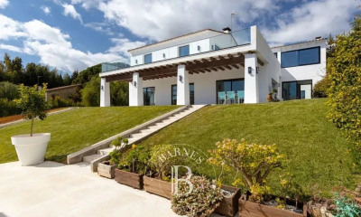 Dans une station balnéaire réputée à 38km de Barcelone, avec ses trois belles plages, son golf, son tennis et ses restaurants et commerces, une villa de 520m² environ sur une parcelle de 2000m² arborée et fleurie avec une piscine, cette villa sur deux niveaux est composée: - au premier niveau sur jardin et piscine, d'une entrée, d'une grande réception avec un salon/ salle à manger avec baies double vitrées, une chambre en suite avec salle de bains et douches, dressing et wc , une chambre de service avec salle de douches et wc, une terrasse avec salon d'été et coin cuisine, - à l'étage, un salon/salle à manger, une chambre avec salle de bains en suite et wc, deux autres chambres, une salle de bains et wc. Deux entrées pour accéder au terrain: une principale et de service pour l'autre. Piscine de 12mx6m avec chauffage par pompe à chaleur et couverture automatique. Un puit d'eau de 32000 litres accessible pour l'arrosage. Arrosage automatique. Un garage de 49m² pour 4 voitures Chauffage à gaz refait en 2020. Très bon état et magnifique jardin autour de la villa à 50m du centre et 5mn en voiture des plages et du golf. voir la video