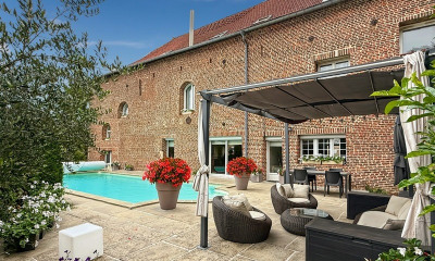 Situé à quelques kilomètres de Cambrai et à moins d'une heure de Lille, ce grand manoir, niché au cœur d'un parc paysagé de plus d'un hectare, se présente comme l'un des témoins silencieux du riche passé économique de la région. Construite en 1860 pour une famille d'industriels locaux, dirigeants d'une importante entreprise de tissage, cette bâtisse imposante représentait à l'origine plus qu'un simple lieu de résidence et incarnait, comme le voulait l'époque, l'image de la réussite économique et sociale de l'entreprise familiale. Se transformant au fil des années suivant les goûts et les aspirations des propriétaires successifs cette très belle demeure a progressivement évolué dans un esprit alliant authenticité et modernisme pour offrir aujourd'hui le calme et la sérénité d'une retraite de charme ou se conjuguent le beau, le bien être et le luxe. Rénové avec goût, le manoir est réparti sur trois niveaux et s'est vu doté à la fin des années 90 d'une extension composée d'une grande salle de réception, d'une piscine chauffée, d'un sauna, d'un ensemble douches/vestiaires et d'un solarium extérieur. Le rez-de-chaussée se compose d'un hall d'entrée, un bureau, une grande cuisine semi professionnelle équipée, une salle à manger, un double salon avec cheminée ouvrant sur le parc et d'un jardin d'hiver assurant la transition avec la partie contemporaine. Le premier étage dessert trois belles chambres avec chacune sa propre salle de bain et ses toilettes, et une grande suite de plus de 60 m² équipée d'une balnéo et d'une douche à l'italienne. Le deuxième étage se réparti également en quatre belles chambres avec salle de bains et toilettes individuelles, ainsi qu'une pièce annexe pouvant faire office de bureau. Des combles aménageables viennent couronner l'ensemble. Une maison de gardien d'environ 100 m², à rénover, située en bordure du domaine, vient compléter la vente. Ce bien, souvent utilisé du fait de son esthétique et de son environnement pour des tournages de films ou de séries TV, est destiné aujourd'hui à une activité polyvalente d'habitation, de séminaires/réceptions et de chambres d'hôtes (calendrier de réservation plein). Il peut se prêter à de multiples usages allant du développement des activités existantes à la réorientation en une vaste et confortable demeure de famille. Classe énergie : D Classe climat : D Montant estimé des dépenses annuelles d'énergie pour un usage standard : entre 8490 euros et 11530 euros par an. Prix moyens des énergies indexés sur les années 2021, 2022 et 2023. Les informations sur les risques auxquels ce bien est exposé sont disponibles sur le site Géorisques :