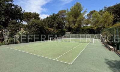 EXCLUSIVITÉ - MOUGINS GRANDE BASTIDE Dans un environnement résidentiel recherché, découvrez cette élégante villa de plain-pied en pierres, d'une surface de 150m², implantée sur un terrain paysager de 1 400m² agrémenté d'oliviers centenaires. Exposée plein Sud et en position dominante, elle bénéficie d'un cadre de vie exceptionnel avec piscine et pool-house, ainsi qu'un terrain de pétanque. L'intérieur, entièrement climatisé, se compose d'un vaste séjour-salle à manger lumineux de 45m² avec cheminée, d'une cuisine semi-ouverte prolongée par une arrière-cuisine avec buanderie et cave à vin. Côté nuit : une suite parentale avec dressing et salle de bains complète (baignoire, douche et WC), ainsi que deux chambres supplémentaires avec salle de bains et toilettes. Un garage de 23m² avec accès direct à la maison (possibilité d'aménagement en 4ème chambre-suite), un portail électrique ouvrant sur une cour pavée avec abri voitures et de nombreux stationnements complètent ce bien rare. Un véritable havre de paix, coup de cœur assuré. À voir absolument ! Les informations sur les risques auxquels ce bien est exposé sont disponibles sur le site Géorisques : georisques. gouv. fr Bien présenté par Agences de France par délégation. Agences de France – SIREN : 899413603 – Titulaire de la carte T : 29012021000000009 non habilité à percevoir des fonds