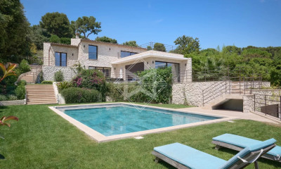 OFFRE D'ACHAT ACCEPTÉE Située à quelques enjambées du village de Saint-Paul de Vence, cette propriété cossue d'environ 285 m² + garage 7 voitures bénéficie d'un environnement calme et résidentiel et d'un jardin paysager de 2 600 m² avec piscine chauffée et à débordement. L'étage de vie se compose d'une belle entrée lumineuse, d'un salon/salle-à-manger volumineux avec cheminée, d'une grande cuisine dînatoire, l'ensemble largement prolongé par une généreuse terrasse de 130 m². Toujours de plain-pied, la Suite parentale offre tout le confort nécéssaire avec salle de bains/douches et son dressing. Deux chambres avec salle de douches et salle de bains ensuite complète le niveau. L'étage inférieur offre 2 chambres avec salle de douches ainsi qu'un bureau (possibilité 6° chambre), une buanderie et une gigantesque garage de plus de 220 m² pour 7 voitures. Ce bureau et la buanderie, accessibles depuis un vaste dégagement doté d'une véritable porte d'entrée indépendante, offrent un espace parfaitement adapté à l'exercice d'une activité libérale à domicile. Le jardin paysager est complanté de magnifique essences méditerranéennes ainsi que de grands oliviers multi-centenaires. La piscine de forme libre est un véritable havre de paix !