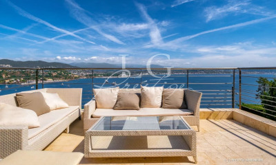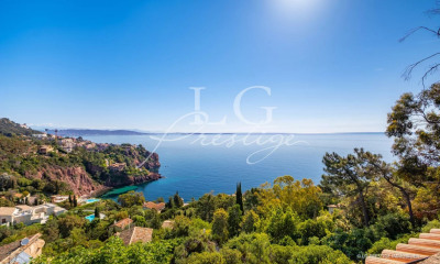 Majestueuse propriété située au coeur de la Baie de Cannes, face aux Iles de Lérins, jouissant d'une vue époustouflante sur la mer, les ports, les montagnes et l'Esterel, à quelques pas des plages et commerces du village de Théoule sur Mer. Dans un quartier résidentiel recherché, la propriété a été entièrement rénovée récemment et présente des finitions et prestations luxueuses. Edifiée sur 3 niveaux chacun reliés par un ascenseur, la villa développe plus de 700m2 habitables ainsi que des annexes permettant un confort de vie optimal. La propriété comprend au total 7 chambres en-suite avec chacune sa salle de bains et/ou douche, dressing, une pièce de réception et une salle à manger, une vaste cuisine dinatoire et seconde salle à manger, un espace bar et cave à vin au niveau de l'espace piscine, un espace détente avec salle de sport, sauna et salon média, une vaste terrasse autour de la piscine. Un appartement avec 3 chambres pouvant accommoder le staff complète ce bien d'exception. Le parking couvert peut accueillir jusqu'à 4 voitures avec 2 bornes pour véhicules électriques, ainsi qu'un abri pour les vélos. La propriété est équipée d'un système de domotique sophistiqué, de la climatisation réversible ainsi que d'un plancher chauffant et refroidissant. La piscine est chauffée et un permis pour la pose de panneaux solaires a été délivré. Un générateur électrique ainsi qu'un bac de récupération des eaux pluviales pour l'arrosage du jardin ont été installés.