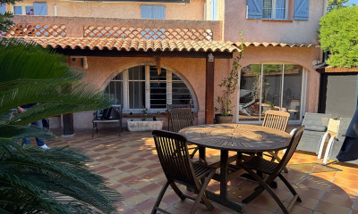 CO EXCLUSIVITÉ - GOLFE JUAN - RARE. Dans une impasse au calme absolu, proche des commodités et des écoles, découvrez cette charmante maison des années 50 construite sur deux niveaux. Dans un style ''hacienda'', vous trouverez au rez-de-chaussée, une cuisine, une salle à manger, un séjour ainsi qu'une buanderie et une salle d'eau indépendante. À l'étage, trois chambres avec placards ainsi qu'une salle de bain et une très grande terrasse ouvrant sur toutes les pièces. Bénéficiant d'une cour intérieure arborée, la maison offre la possibilité d'un stationnement couvert, ainsi qu'un atelier. Possibilité de stationner dans la rue. Toiture neuve. Contacter sans plus tarder l'agence ou Marie