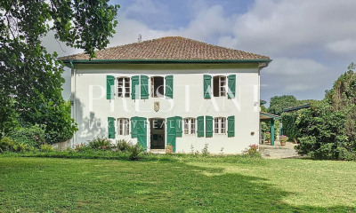 Rare propriété à vendre située à 1 km du centre d'un charmant village dominant la vallée de l'Adour avec une belle vue sur les Pyrénées allant du Pic du Midi jusqu'au massif des Trois Couronnes en Espagne. Un château rénové, construit dans les années 1850 dans le style 18ème compte 15 pièces principales dont 3 salons (un de 65m²), une salle à manger, une cuisine, une buanderie, 8 chambres et 7 salles de bains. Une maison annexe construite dans les années 1960 dans le style landais avec un salon, deux chambres et une salle d'eau. Le parc de près d'1,7 hectares est planté de chênes centenaires, arbustes, prairie, bois, verger et potager et comporte une piscine de 13 x 5m avec carrelage espagnol et un tennis en parfait état. Le tout est au calme, sans aucunes nuisances et jouit d'une exposition plein sud.