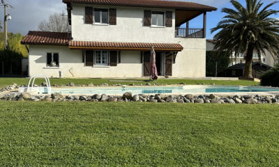 En plein coeur du bourg de Urt à 15mn de Bayonne, toutes les commodités à pied, corps de ferme rénové, belle pièce de vie, cuisine équipée, 4 chambres dont 2 de plein pied. Une piscine offrant, une vue sur la forêt. En plus, un garage isolé et une dépendance de 130m² à transformer selon vos besoins et envies. Proposition d'aménagement virtuel non contractuelle en dernière photo.