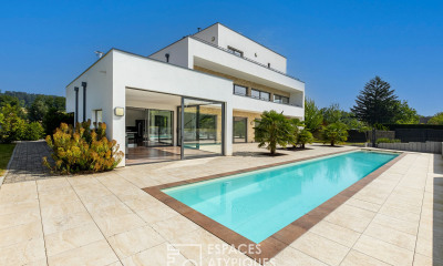 Implantée sur les hauteurs de Leymen, cette maison individuelle offre une surface habitable de 122 m² et prend place sur un terrain de 504 m². Son implantation dominante et sa vue dégagée participent immédiatement à l'atmosphère paisible et privilégiée des lieux. L'entrée spacieuse structure la circulation et mène naturellement vers une cuisine équipée, pensée comme un espace convivial du quotidien. Celle-ci s'ouvre sur une vaste pièce de vie traversante, largement éclairée par de généreuses ouvertures. Le séjour, agrémenté d'une cheminée, se prolonge par une véranda offrant une continuité naturelle avec l'extérieur et un espace de vie supplémentaire. À l'étage, l'escalier dessert un espace ouvert idéal pour un bureau ou un coin lecture, ainsi que deux chambres. Une salle de bains équipée d'une baignoire et d'une douche, dans une configuration fonctionnelle et familiale complète ce niveau. Le sous-sol propose de très beaux volumes de stockage, une salle d'eau et abrite la partie technique. Un garage accolé à la maison, doté d'une porte motorisée, vient compléter l'ensemble et facilite le quotidien. Le terrain permet de profiter pleinement de l'environnement verdoyant et du calme propre aux hauteurs de la commune. La situation résidentielle de Leymen, à proximité des commodités, des écoles et des axes transfrontaliers, renforce l'attrait de ce bien familial. Gare à 1 minute Tram à 1 minute Commerces 2 minute Certaines images illustrent des suggestions d'aménagement réalisées par une intelligence artificielle. L'ameublement et la décoration sont des projections non contractuelles. CLASSE ENERGIE : D / CLASSE CLIMAT : D Montant moyen estimé des dépenses annuelles d'énergie pour un usage standard, établi à partir des prix moyens des énergies indexés sur les années 2021, 2022, 2023 (abonnements compris) : entre 2640 et 3630 € Contact : Morgane Morgane SCHLATTER (EI) Agent Commercial - Numéro RSAC : 930539382 - MULHOUSE.