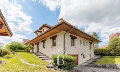 Idéalement située sur l'axe Annecy-Genève, dans un environnement préservé et résidentiel, cette villa contemporaine à l'architecture élégante offre un cadre de vie rare, orienté plein sud et sublimé par une vue panoramique sur le lac d’Annecy et les montagnes environnantes. Spacieuse et baignée de lumière, elle incarne le parfait équilibre entre confort familial et raffinement contemporain avec son architecture en U. Au rez-de-chaussée, un vaste hall d’entrée donne le ton. La cuisine équipée s’ouvre sur une grande terrasse abritée, parfaite pour les repas d’été. L’espace de vie cathédrale, aux volumes impressionnants, se prolonge vers l’extérieur avec une terrasse plein ciel de 60 m². Deux chambres, dont une avec dressing, une salle de bain, des toilettes indépendantes et une pièce de rangement complètent ce niveau. À l’étage, une mezzanine accueille un salon TV ouvert sur la pièce de vie, ainsi qu’une superbe suite parentale avec balcon privatif, dressing, et salle de bain ouverte (baignoire, double douche, WC) offrent un espace nuit confortable et élégant. Sur l’autre aile, une grande chambre avec balcon et salle d’eau, ainsi qu’une pièce polyvalente (chambre ou bureau) offre une parfaite intimité. En rez-de-jardin, un atelier avec salle d’eau et WC peut être transformé en studio indépendant avec accès dédié. Le sous-sol propose des prestations de grand standing : garage double avec espace de rangement, buanderie, "mudroom", cave à vin, cave traditionnelle et local technique. À l’extérieur, la parcelle paysagée s’articule autour d’une piscine chauffée de 13 x 3,5 m avec volet roulant intégré. Les espaces extérieurs — terrasses, balcons, zones de détente — permettent de profiter pleinement de l’ensoleillement et de la vue imprenable tout au long de la journée. À seulement 15 minutes d’Annecy et 20 minutes de Genève, cette propriété bénéficie d’un emplacement stratégique alliant proximité des axes, sérénité, et panorama exceptionnel. Les écoles, commerces et commodités sont aisément accessibles tout en conservant une atmosphère intime et naturelle.