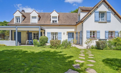 A quelques minutes de MONTFORT L'AMAURY, sur les hauteurs d'un village recherché en lisière de forêt, belle longère ancienne en pierres de 300 m² environ ouverte sur son parc arboré et fleuri de 3605 m². En rez de chaussée entrée sur beau salon de 26 m² avec cheminée, en continuïte cuisine équipée de 20 m² avec accès terrasse et vues sur le jardin, autre salon de 23 m² avec poêle à bois, salle à manger; partie chambre parentale avec dressing, salle de bains et douche /wc, buanderie-cellier. A l'étage avec accès par 2 escaliers: 4 chambres,bureau, mezzanine, salle de bains, salles d'eau. Toiture entièrement refaite et isolée - murs isolés. Parkings intérieurs - 2 chalets de jardin - belles terrasses en bois. Très calme. COUP DE COEUR!