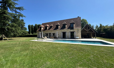 Située au coeur d'un village de charme, à quelques minutes de Montfort L'Amaury, belle propriété en parfait état, construite avec des matériaux de grande qualité. Maison principale de 427 m² environ, lumineuse et offrant de très beaux volumes de réception, salon principal de 90 m² avec cheminée, salle de billard de 40 m², cuisine équipée avec espace repas, bureau, 2 suites avec salle de bains et wc. A l'étage : 2 belles suites avec salles de bains et wc. Maison d'amis indépendante de 105 m² environ avec terrasse privative, salon 38 m², cuisine équipée indépendante, buanderie, wc et à l'étage une belle chambre de 30 m², salle de douche avec wc. 4 grands garages avec salon d'étage de 23 m² - atelier - Espace détente avec piscine couverte et chauffée, espace douche, salle de sport. Chauffage au gaz (plancher chauffant et radiateurs) - assainissement autonome - isolation haut de gamme. Forêt domaniale à pied - au calme. PARFAIT ETAT
