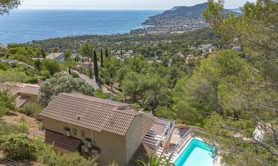 A vendre sur les hauteurs de Carqueiranne, villa d'environ 200 m2 offrant une vue mer panoramique exceptionnelle sur les îles d'Or et la presqu'ile de Giens. Baignée de lumière, la maison séduit par ses volumes, ses prestations de qualité et son atmosphère élégante. La pièce de vie s’ouvre sur une large terrasse et une piscine à débordement face à la mer. Cuisine ouverte contemporaine, 3 chambres dont une suite parentale avec terrasse solarium, T2 indépendant idéal pour recevoir, ascenseur, terrain de pétanque, atelier et grand abri voiture. Un bien rare, alliant confort, vue spectaculaire et art de vivre méditerranéen.