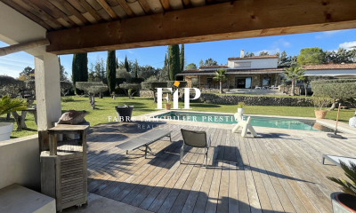 Cette magnifique bastide en pierre, dont les origines remontent au début du XVIII? siècle, est nichée dans un cadre paisible, entourée de vignes et de forêts, au cœur de la Provence Verte. Elle se trouve à proximité du village médiéval de Le Val, connu pour son patrimoine historique, et à seulement 45 minutes de la belle ville d’Aix-en-Provence. Restaurée avec soin et dans le respect de son authenticité, cette propriété de caractère offre 500 m² habitables. Dès l’entrée, baignée de lumière, on accède à une élégante salle à manger avec une grande cave à vin, un salon raffiné décoré avec goût et doté d’une cheminée en pierre, ainsi qu’à une spacieuse cuisine équipée d’un évier en pierre, d’un piano de cuisson Aga et de meubles sur mesure. La cuisine s’ouvre sur une superbe véranda d’hiver, idéale pour les journées plus fraîches. Une grande buanderie et un atelier avec poêle à bois complètent le rez-de-chaussée. À l’étage, l’aile est abrite une vaste suite parentale avec salle de bain attenante, baignoire îlot et dressing. Au deuxième étage, une chambre d’amis avec douche et wc, une bibliothèque/salon télévision et un bureau agrémenté de magnifiques bibliothèques sur mesure. L’aile ouest comprend une grande chambre double avec douche et wc ainsi qu’un appartement indépendant sous les toits, composé d’une cuisine ouverte, d’un salon, d’une chambre et d’une salle d’eau avec wc. Cet appartement dispose de son propre accès. La propriété s’étend sur plus d’un hectare de terrain luxuriant, bordé par une rivière. Une superbe piscine en pierre est entourée de terrasses propices à la détente et d’une vaste cuisine d’été d’inspiration marocaine. Un jardin aromatique avec bassin, un potager, plusieurs oliviers et arbres fruitiers ainsi que des platanes et chênes centenaires viennent parfaire ce cadre enchanteur. Un véritable havre de paix en Provence.