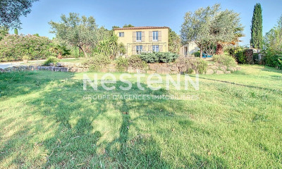Nichée sur les hauteurs de Draguignan, dans un environnement calme et verdoyant, cette maison de 180 m² de 2004 est une véritable perle rare. Dès votre arrivée, découvrez un vaste séjour de 57 m², baigné de lumière et donnant sur de larges terrasses. La cuisine indépendante, moderne et fonctionnelle, est parfaite pour les amateurs de cuisine. L'espace nuit est pensé pour le confort de toute la famille, avec trois belles suites, dont une suite parentale complète avec dressing et salle de bain. Un bureau vient compléter cet agencement. Le terrain de 4 000 m² est un véritable havre de paix, offrant une vue sublime et dégagée sur la nature, sans aucun voisin. La piscine de 10 x 5 m et les terrasses couvertes sont idéales pour profiter des beaux jours en toute tranquillité. Un grand sous-sol de 90 m² est également disponible, parfait pour un garage, du stockage ou bien agrandir l'espace de vie de la villa Une maison idéale pour une famille en quête de tranquillité, tout en restant à proximité des commodités. Elle saura séduire par son agencement optimisé, sa luminosité et son potentiel d’amélioration. Les informations sur les risques auxquels ce bien est exposé sont disponibles sur le site Géorisques