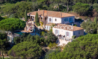 Dans le quartier de La Quessine, réalisé par un architecte de renom, situé à quelques minutes à pied des plages de Pampelonne et de L'Escalet et seulement dix minutes du centre de Saint-Tropez. Je vous présente une superbe villa contemporaine d'inspiration Art Déco d'env. 400m² lovée dans un écrin de verdure de 1.2 hectares aux essences méditerranéennes. Elle offre 6 chambres en suite dont 2 de plain-pied. Une spacieuse salle à manger avec cuisine ouverte sur terrasses. Le parc paysager comprend un espace piscine bordé de bois exotique, un terrain de boules, un espace barbecue, un car port, une gloriette, un chalet en bois aménagé avec une chambre, une salle de douche et une kitchenette. Les vues ouvertes sur la mer sont un émerveillement quotidien. Un petit chemin confidentiel descend à la mer en quelques minutes pour des baignades en toute tranquillité. Commerces à moins de cinq minutes en voiture offrant tout le nécessaire. Le prix de présentation comprend les honoraires à la charge des acquéreurs. Autres biens du même rang nous consulter. Charles TARDY +33 (0)6 75 68 14 98