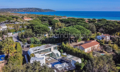 En exclusivité, nous vous présentons cette superbe villa, un bien rare à la vente. Récemment rénovée avec goût et élégance, elle utilise des matériaux rares tels que le noyer, la pierre du Portugal et le Zellige dans les salles de bain. D'une superficie de 250 m², cette villa contemporaine offre un espace aéré où la pureté du paysage est mise en valeur grâce aux volumes et aux larges baies vitrées à galandages, créant une impression de "dedans/dehors". De plain-pied, elle se compose de 5 chambres en suite, d'une belle pièce de vie ouverte de 80 m², lumineuse et aérée grâce à sa hauteur sous plafond. Elle donne sur une terrasse ombragée et une superbe piscine de 14x7 m. Un pool house avec cuisine d'été et chambre d'invité complète cette villa aux prestations exclusives. Idéalement située, la plage est accessible à pied en moins de 15 minutes par un chemin piéton à travers les vignes, offrant une expérience unique au coeur de la nature. La villa est entièrement sécurisée avec une alarme périmétrique, des caméras et une alarme intérieure, et le parc de 1,2 ha est entièrement clôturé. Un forage alimente une cuve pour l'arrosage du jardin. Possibilité de récupérer la TVA pour un investissement locatif. Un bien d'exception, à voir absolument.