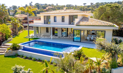 Vente villa Sainte-Maxime. Dans un domaine calme et sécurisée, à proximité des plages de la Nartelle, superbe villa d'env 170 m² avec une magnifique vue mer édifiée sur une parcelle de 1717 m². Elle comprend : Hall d'entrée, wc invités, vaste séjour cheminée, salle à manger ouvrant sur terrasse couverte, cuisine us équipée 2 chambres, salle d'eau et wc séparé. A l'étage : 2 chambres dont une avec salle de bains, salle d'eau et wc séparé. Sous-sol total avec garage. Une piscine agrémente le jardin joliment arboré.