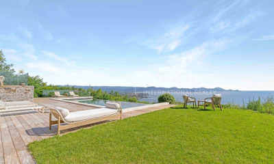 Coldwell Banker Esterel Realty vous présente cette bastide contemporaine entièrement réhabilitée, bénéficiant d'une vue panoramique à 180° sur la mer, dans un environnement privilégié. D'une surface d'environ 200 m², elle offre un grand séjour, une salle à manger, une cuisine ouverte, 4 chambres dont une suite parentale, 3 salles de bain et un bureau. Matériaux haut de gamme : béton brut, verre, bois clair, pierre naturelle. Le terrain de 1 120 m², paysagé et sans vis-à-vis, accueille une piscine élégante avec cuisine d'été, un garage et des places de stationnement. Entre mer et collines verdoyantes, un bien rare alliant design, confort moderne et nature. GFA (garantie bancaire en cours) Plans & documents sur demande – Contact : Williams AUREILLE ?? +33 (0) 682 822 539 €?