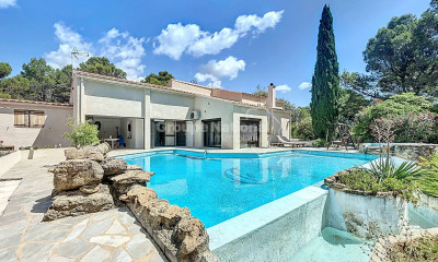 Découvrez cette maison d'architecte contemporaine à vendre à Uchaux, avec piscine au sel et prestations haut de gamme Située sur la commune d'Uchaux, cette maison contemporaine de plain-pied séduit par sa conception soignée, alliant confort moderne, performance énergétique et qualité de construction. Édifiée en brique alvéolaire offrant une excellente isolation thermique et phonique, elle bénéficie d'un environnement parfaitement aménagé, au calme, avec un terrain clos de murs, un jardin paysagé et éclairé, ainsi que de vastes terrasses couvertes propices à la vie extérieure. Les prestations intérieures de la maison L'intérieur offre une organisation fonctionnelle et élégante, avec de nombreux rangements intégrés et des prestations de qualité supérieure. La pièce de vie impressionne par son volume et sa luminosité exceptionnelle, grâce à de larges ouvertures sur l'extérieur. Elle s'ouvre sur une cuisine contemporaine haut de gamme, équipée d'un plan de travail en quartz et d'un système de double hotte aspirante au sol, alliant esthétisme et discrétion. Un cellier aménagé et une buanderie équipée avec accès direct au jardin complètent l'ensemble. La maison dispose de deux chambres, toutes deux avec terrasse et pergola. Un WC invité avec lave-mains et fenêtre complète cet espace. La suite parentale propose un confort premium avec dressing aménagé, WC séparé et salle d'eau élégante équipée d'une douche avec cascade et ciel de pluie, miroir coulissant et VMC double flux. Le confort thermique est assuré par une climatisation gainable. La maison bénéficie d'une domotique complète, ainsi que d'un adoucisseur d'eau, d'un chauffe-eau indépendant pour la cuisine, de détecteurs de fumée, d'un éclairage par détection de mouvement, d'un portier vidéo, de menuiseries en double vitrage et de panneaux photovoltaïques. Les extérieurs et équipements techniques Les extérieurs proposent de vastes terrasses couvertes, un terrain de boule éclairé et un jardin avec arrosage goutte à goutte. La piscine au sel est équipée d'un contrôle automatique du pH et intègre un spa chauffé. Un chalet poolhouse de qualité Grosfillex complète cet espace. Le garage de 39 m², avec porte automatique, dispose d'un rangement en mezzanine et d'une pièce supplémentaire. La maison est raccordée à l'eau de ville, à la fibre et équipée d'une microstation récente. Uchaux, un emplacement recherché Uchaux est une commune appréciée pour son cadre résidentiel et verdoyant, entre Orange et Bollène, offrant un accès rapide aux axes autoroutiers et aux commodités. En conclusion Cette maison d'architecte contemporaine à Uchaux séduit par ses volumes, sa luminosité, son calme et ses prestations haut de gamme. Avec ses deux chambres disposant chacune d'une terrasse et d'une pergola, sa piscine avec spa chauffé et sa domotique complète, elle constitue une opportunité rare pour une résidence clé en main alliant modernité et qualité de vie. Cette propriété est à vendre par l'agence immobilière de Vaison La Romaine. Les informations sur les risques auxquels ce bien est exposé sont disponibles sur le site Géorisques : http://www.georisques.gouv.fr Conformément à la réglementation en vigueur, la surface DPE de ce bien est établie sur la base d'un mesurage normé de la surface. Ce mesurage peut différer de la surface totale mesurée avec précision par nos équipes commerciales.