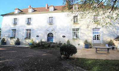 À 2 h de Paris, en Bourgogne, au coeur d'une cité à fort caractère patrimonial, une élégante villa du 19e s entourée d'un parc arboré, avec dépendances et piscine. Le quartier est très résidentiel, apprécié pour son calme et sa confidentialité. De larges avenues arborées bordent de nombreux hôtels particuliers aux façades remarquables. Une grille d'entrée surmontée d'un hérisson ouvre sur le parc de la propriété, un second passage par une autre avenue permet l'accès des véhicules ; un parterre gravillonné est aménagé pour leur stationnement. La maison de maître est érigée au centre du parc, sa façade principale, en retrait de la rue, est orientée au nord, et sa façade sud, ouverte sur le jardin, donne sur la piscine carrelée. La bâtisse originelle, de plan centré, est surélevée d'un étage et d'un niveau de comble. Ses murs sont recouverts d'un enduit ton pierre et sa toiture, mansardée, est couverte d'ardoises et de zinc. Une aile a été ajoutée ultérieurement à l'ouest, construite sur deux niveaux, couverte d'un toit-terrasse. Dans le prolongement de cette aile, une véranda contemporaine est aménagée, bordant la piscine. Un vaste parc gazonné et ombragé, planté d'arbres de haute tige, dont certains sujets sont séculaires, est agrémenté de massifs et plate-bandes florales. Plusieurs recoins paisibles, espaces de détente, sont placés ça et là, à l'ombre d'un arbre ou autour de la piscine.