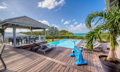 EN EXCLUSIVITE - A VENDRE - PROPRIETE D'EXCEPTION AVEC VUE MER ET POTENTIEL LOCATIF REMARQUABLE - SAINTE ANNE. Laissez - vous séduire par cette perle rare située dans un quartier recherché de Sainte Anne, à proximité immédiate des commerces, écoles, services et de la célèbre plage du bourg. Rénovée intégralement entre 2022 et 2023, cette propriété en béton banché allie charme, modernité et prestations haut de gamme. Elle vous offre des volumes généreux, une luminosité exceptionnelle et un potentiel locatif déjà exploité (en meublé 3*). Un investissement clé en main pour une résidence principale ou une activité touristique. Villa principale : Dès l'entrée, vous serez accueilli par un vaste hall avec puits de lumière doté de 5 mètres linéaires de placards intégrés. L'espace de vie de 55m2 s'ouvre sur une magnifique cuisine américaine avec en prolongement un salon spacieux, baignée de lumière naturelle grâce à ses grandes fenêtres et une baie donnant accès directement à la terrasse piscine et au carbet avec vue mer. L'espace nuit se compose de deux parties distinctes : - Une somptueuse suite parentale de 39m2 avec chambre, bureau et sa salle d'eau. - Deux chambres supplémentaires avec une salle d'eau commune et un WC indépendant. Espaces extérieurs : - Grand parking sécurisé par un portail motorisé et équipé pour le chargement des voitures électriques. - Jardin arboré avec résiduel de construction - Etanchéité d'une partie de la toiture récemment refaite. Annexes : - Un studio indépendant avec vue mer, comprenant une cuisine, un espace de vie et une salle d'eau, parfait pour accueillir de la famille ou des amis. - Un second studio coté rue, avec une entrée indépendante, une pièce de vie, une salle d'eau, une terrasse avec la cuisine équipée et un solarium. - Un bungalow T2 indépendant avec une chambre, un salon, une salle d'eau, une grande terrasse avec cuisine et buanderie équipée et une vue mer. Prestations supplémentaires : - Menuiseries aluminium, vitres teintées, stores électriques et moustiquaires intégrées - Cuves de récupération d'eau de pluie de 3 300L raccordée à la villa principale - Deux cuves tampons de 2 200L reliées au réseau - Chauffe-eau solaire : 3 x 100L - Espaces de stockage sous la maison - Possibilité d'extension (R+1 + combles). Un véritable bijou à découvrir sans attendre. Que vous soyez une famille en quête de confort et de modernité, ou un investisseur avisé dans la location saisonnière, cette propriété répondra à toutes vos attentes. Contactez-moi dès aujourd'hui pour plus d'informations ou organiser une visite privée. Photos et vidéos disponibles sur demande. Un plan de financement vous sera demandé avant l'organisation d'une visite. Les honoraires d'agence sont à la charge de l'acquéreur, soit 3,21% TTC du prix hors honoraires. Les informations sur les risques auxquels ce bien est exposé sont disponibles sur le site Géorisques : georisques. gouv. fr. Réseau Immobilier CAPIFRANCE - Votre agent commercial (RSAC N°894 608 066 - Greffe de POINTE A PITRE) Magali GOURDAIN Entrepreneur Individuel +590690090752 - Réf.922362