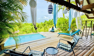 Villa créole T5 avec bungalow indépendant et piscine – À 300 m de la plage. Emplacement recherché – Quartier résidentiel calme – Proche commodités. À seulement 300 mètres de la plage, découvrez cette superbe villa de style créole T5, en excellent état, avec bungalow indépendant, piscine et de très beaux volumes. Un bien idéal pour une résidence principale, secondaire ou un projet en locatif saisonnier. La villa principale – Environ 175 m² habitables + 48 m² de terrasse. Rez-de-chaussée : • Séjour lumineux de 43 m² avec charpente apparente • Ouverture sur une belle terrasse couverte d'environ 48 m² • Cuisine américaine équipée et cellier attenant • WC indépendant avec lave-mains • 2 chambres climatisées (environ 14,5 m² et 16 m²) avec placards • Salle d'eau avec douche à l'italienne et double vasque • Suite parentale climatisée d'environ 45 m², avec mezzanine, dressing, salle d'eau avec WC et accès direct à la piscine. À l'étage (sous combles) : • Grande mezzanine d'environ 52 m² au sol • 1 chambre climatisée d'environ 13 m² (35 m² au sol). La terrasse couverte se prolonge par un deck en bois rouge, une belle piscine 7 x 3,5 m, une douche extérieure et un carbet. Le bungalow – Environ 18 m² habitables + 29 m² de terrasse. Totalement indépendant, ce bungalow constitue un véritable atout, aussi bien pour recevoir famille et amis que pour un usage en location saisonnière. Il comprend : • 1 chambre climatisée • 1 salle d'eau moderne avec douche à l'italienne, lavabo et WC • Une spacieuse terrasse couverte avec cuisine équipée, offrant un espace de vie agréable et fonctionnel Très apprécié des locataires, ce bungalow offre une excellente rentabilité. L'ensemble comprend également un abri jardin, 2 places de stationnement, un chauffe-eau solaire et le raccordement au tout-à-l'égout. Les points forts • Villa créole de caractère • Bungalow indépendant • Piscine et espaces extérieurs soignés • Plage accessible à pied (300 m) • Quartier calme et très recherché. Les honoraires sont à la charge du vendeur. Les informations sur les risques auxquels ce bien est exposé sont disponibles sur le site Géorisques : georisques. gouv. fr. Réseau Immobilier CAPIFRANCE - Votre agent commercial (RSAC N°522 630 151 - Greffe de FORT DE FRANCE) Karine FALISE Entrepreneur Individuel +596696053108 - Réf.938405