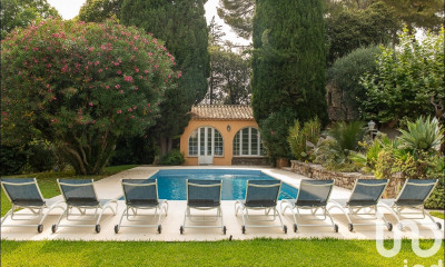 Idéalement située au sein du très recherché Domaine de Pimeau à Antibes Juan-les-Pins, cette élégante villa provençale en pierres naturelles bénéficie d’un environnement résidentiel d’exception, alliant calme, discrétion et proximité immédiate des plages et des adresses emblématiques de la Côte d’Azur. Implantée sur un terrain paysager d’environ 2 313 m², la propriété développe près de 333 m² habitables et offre des volumes généreux, une circulation fluide et une atmosphère élégante, parfaitement adaptée à une résidence secondaire haut de gamme pour une clientèle internationale. La villa propose cinq chambres, dont trois en rez-de-jardin et deux à l’étage, comprenant une suite parentale avec dressing, salle de bains et terrasse privative bénéficiant d’une vue mer dégagée. Un sous-sol complète l’ensemble avec une chambre de service et un espace à fort potentiel d’aménagement. Honoraires d’agence à la charge de l’acquéreur.