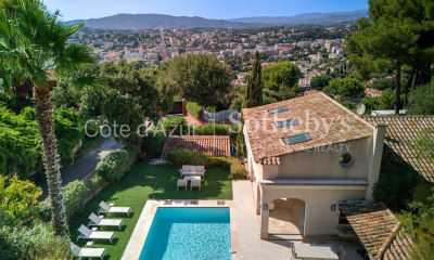 Nichée au cœur du très prisé quartier résidentiel de Cannes Eden, à quelques minutes seulement du centre de Cannes, des plages et du Cap d’Antibes, cette villa de caractère séduit par l’harmonie parfaite entre l’authenticité d’une provençale revisitée et des prestations contemporaines de qualité. D’une surface habitable d’environ 280 m², la propriété offre de généreux espaces de vie baignés de lumière naturelle. La grande hauteur sous plafond et les larges baies vitrées mettent en valeur une vue imprenable sur la Méditerranée, le Cap d’Antibes et les îles de Lérins. Le salon, la salle à manger et la cuisine moderne entièrement équipée avec îlot central s’ouvrent harmonieusement sur les terrasses et le jardin. La villa dispose de cinq chambres, dont une superbe suite parentale de plain-pied avec salle de bains complète et dressing. Les autres chambres, aménagées en suites sur différents niveaux, assurent confort et intimité. Un bureau ainsi qu’un espace télévision en mezzanine viennent compléter l’étage. Un studio indépendant apporte une réelle valeur ajoutée, idéal pour accueillir des invités ou du personnel. À l’extérieur, le jardin paysager dévoile une piscine ,de 11X4.5m, un jacuzzi et un poolhouse convivial avec barbecue dans un cadre paisible et préservé. Un sauna, plusieurs places de stationnement couvertes ainsi que des équipements modernes viennent parfaire cette propriété.
