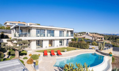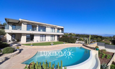 VALLAURIS - Située en position dominante, bénéficiant d'une vue mer panoramique, au calme absolu, cette villa de 235m² env. entièrement rénovée avec des matériaux de qualité, est édifiée sur un terrain de 1666m2 avec piscine. Au Rez-de-chaussée : Un large salon-séjour de 100m2 env. avec 1 cuisine ouverte, le tout ouvert sur l'espace extérieur. Ce niveau propose également 4 chambres et 4 salles de bains, dont la master avec ses dressings. Au rez-de-jardin : 1 dépendance aménagée de 60m2, proposant 1 salon-séjour, 1 cuisine, 1 chambre et 1 salle de bains. En complément : Un Abri pour 2 voiture et de nombreuses places de parking. « Les informations sur les risques auxquels ce bien est exposé sont disponibles sur le site Géorisques : »