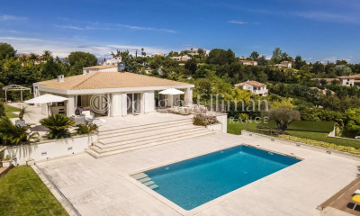 Située sur les hauteurs du quartier le plus prisé de Super Cannes, cette sublime villa contemporaine aux lignes épurées bénéficie d'une fantastique vue panoramique sur la mer et développe 300 m² sur seulement deux niveaux. Avec plus de 100 m² d'espace salon-salle à manger-cuisine, de plein pieds avec la piscine, cette villa offre un incroyable espace de vie, ouvert sur une terrasse de 110 m2 au bord de la piscine offrant une vue féerique sur la mer et les reliefs jusqu'aux frontières italiennes. Les quatre chambres toutes avec une salle de bains ou douches, toilettes et de généreux dressing profitent de la vue mer et s'ouvrent également sur une profonde terrasse. Le confort de ce bien est complété par le chauffage au sol dans les pièces de vie ainsi que la climatisation réversible. Abri pour deux voitures et possibilité de garer quatre voitures. Domotique Climatisation centralisée Rideaux occultants électriques Chauffage au sol Alarme Video surveillance Piscine chauffée Dossier complet sur demande (plans intérieur, DPE, taxe foncière etc..)