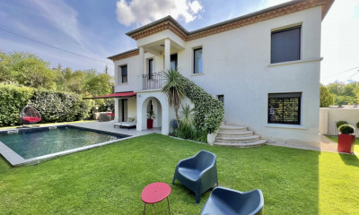 Le groupe Nicolas Staes vous présente à la vente sur Aix-en-Provence à quelques minutes du centre ville à pied cette villa rénovée bénéficiant d’un fort potentiel d’agrandissement. D’une superficie habitable total de 230 m2 comprenant un studio de 30 m2 indépendant, la villa est édifiée sur un terrain de 660m2 avec 2 box et 2 places de parkings. La villa se compose d’un large séjour / salle à manger avec cuisine américaine et îlot central, cellier. 4 chambres dans la maison principale avec 1 salle de bain et 2 salles de douches, ainsi qu’un studio indépendant tout équipé avec 1 salle d’eau. Terrain piscinable. Prix honoraires inclus.