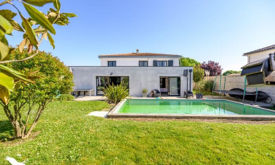Située à 10 minutes au Nord de La Rochelle, sur la commune appréciée de Nieul-sur-Mer, à proximité immédiate des commerces et écoles, cette réalisation contemporaine récente a été conçue pour une vie de famille conviviale. Cet archétype de la maison moderne se décline ici autour de matériaux de qualité, subtilement choisis : béton ciré, métal, verre et bois. Chaque détail a été rigoureusement sélectionné chez des designers de renom ou des artisans reconnus, ce qui fait de cette maison un cocon coloré et chaleureux. La pièce de vie est composée d'une cuisine centrale à l'équipement haut-de-gamme qui se prolonge sur un espace dinatoire. Les codes des lofts New-yorkais sont omniprésents, autour de l'escalier métallique et des briques murales véritables. Plus bas, le salon sur parquet massif est entièrement domotisé et promet d'agréables moments de détente. Ce volume baigné du lumière grâce aux vitres et ouvertures omniprésentes, se prolonge dans la suite parentale située de plain-pied. Elle accueille une salle d'eau équipée de meubles Moab italiens. Un garage aménagé en buanderie avec de nombreux rangements et y permettant d'accueillir des vélos ou moto complète ce niveau. Tel un lien entre les deux niveaux, un mur végétalisé apporte une touche de nature à l'ambiance et s'apprécie d'autant plus depuis la première chambre de l'étage, aux allures d'atelier d'artiste qui s'ouvre en transparence sur cette verdure rafraichissante. La seconde chambre se distingue par ses volumes développés sur trois niveaux. Un premier est alloué à l'espace nuit et au bureau, le second à un espace de jeux créatif et aux rangements. Puis la mezzanine vient compléter cet espace conçu astucieusement et qui fera le bonheur des petits et grands. Une salle de bains aux touches design complète les caractéristiques singulières de l'étage. A l'extérieur, une terrasse intime exposée plein Sud permet de profiter de l'environnement central mais néanmoins calme de ce quartier plaisant où il fait bon vivre, à proximité des transports et axes routiers, à quelques minutes du bord de mer. Un coup de coeur et une maison hors normes pour les amateurs de design. CLASSE ÉNERGIE : B/ CLASSE CLIMAT : A Montant moyen estimé des dépenses annuelles d'énergie pour un usage standard, établi à partir des prix de l'énergie de l'année 2021 : entre 780 e et 1 090 €. Reportage photo complet sur notre site Espaces Atypiques Charente-Maritime. Contact : Astrid CAURIT Agent commercial (EI) - RSAC La Rochelle n°793067059 Astrid CAURIT (EI) Agent Commercial - Numéro RSAC : 793 067 059 - La Rochelle.