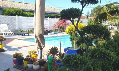 Architecture contemporaine, cette maison de 234 m² à l’ossature bois s’inscrit sur un terrain arboré de 1167 m², au cœur du golf de Gujan dans un environnement préservé. Construite en 1998, la maison bardée de pin Douglas est agencée sur deux niveaux aux volumes distincts, mettant en avant des lignes épurées et un agencement pensé pour maximiser la lumière dans une ambiance bord de mer. L’accès à la maison se fait par une grande porte en bois massif sur pivot désaxé qui s’ouvre sur le séjour de 70 m², pièce baignée de lumière naturelle grâce à de grandes baies vitrées qui s’étendent du sol au plafond, créant une connexion fluide entre l’intérieur et l’extérieur. Ce vaste séjour accueille une partie salon avec une cheminée à insert, un coin détente et une salle à manger, le tout harmonisé par un plafond aux solives apparentes peint en blanc pour une impression de hauteur et une ambiance chaleureuse. La cuisine largement vitrée sur le jardin avec son cellier attenant, est dotée de plans de travail en inox brossé, de rangements intégrés et d’un îlot central. Également au rez-de-chaussée, la suite parentale, spacieuse, dispose d’une salle de bain avec baignoire et douche privative aux carreaux en céramique artisanale et d’un dressing. Un bureau lumineux avec mezzanine offre un cadre idéal de travail mais pourrait aussi devenir une chambre. Devant un angle vitré dans la pièce de vie, un escalier en béton ciré blanc conduit discrètement vers deux chambres indépendantes à l’étage, chacune avec sa salle d’eau et une ouverture sur la terrasse haute avec une vue dégagée sur la nature du golf et un accès direct à la piscine en contrebas via un escalier métallique. Une terrasse en bois entoure la piscine au sel chauffée, avec un pool house, un jacuzzi et une cuisine extérieure qui complètent cet extérieur convivial. Enfin, un espace de stationnement pouvant accueillir plusieurs véhicules ainsi qu’une borne de recharge électrique se trouvent à l’entrée du terrain. Un cadre enchanteur, alliant confort et nature.