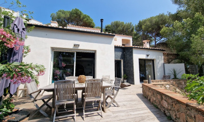 Côté Bas Saint-Clair Située au-dessus du quartier de la Corniche, dans un environnement résidentiel recherché, cette villa d'architecte construite en 1985 offre une vue à couper le souffle sur la mer Méditerranée, avec une belle exposition Sud-Ouest. Édifiée sur un terrain clos et arboré de 465 m², la maison développe environ 170 m² habitables, répartis sur plusieurs niveaux. Au rez-de-chaussée, vous profitez d'une vie de plain-pied avec un grand salon-séjour lumineux, une cuisine indépendante, une vaste terrasse panoramique face à la grande bleue, une suite parentale ainsi que des toilettes séparées. À l'étage, trois chambres accueillantes, chacune avec sa propre terrasse et une vue exceptionnelle sur la mer, une salle d'eau et un WC indépendant complètent l'espace nuit. Au niveau inférieur, une grande pièce avec accès indépendant offre de multiples possibilités : profession libérale, home cinéma, salle de jeux ou cuisine d'été. Une cave à vin et un garage viennent parfaire ce niveau. Côté extérieur, une piscine intime et bien exposée (à remettre en fonctionnement) vous promet de beaux moments de détente. La maison dispose également du tout-à-l'égout et permet le stationnement de trois véhicules supplémentaires à l'intérieur de la propriété, en plus du garage. Un bien rare à la Corniche, alliant volumes, vue mer spectaculaire et fort potentiel.