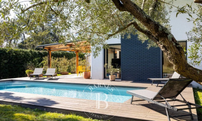 Entre mer et golf, au calme, ravissante maison baignée de lumière, d'une superficie totale de 125 m², située au coeur du quartier prisé de Chiberta. La maison a été entièrement rénovée en 2019 et comporte une jolie pièce de vie, 3 chambres, 2 salles de douche et une mezzanine. Garage de 23 m². Piscine chauffée.