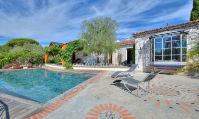 Votre agence BERSAN Immobilier à le plaisir de vous proposer, cette villa, construite par une entreprise locale de référence en la matière. Le rez-de-chaussée dispose d'un vaste séjour double, d'une cuisine indépendante aménagée et équipée, de deux chambres (de 14 et 16 m²), d'une salle de bains, de WC séparés avec lave mains et d'une spacieuse entrée. On trouve au premier étage une chambre de 38 m², une salle d'eau et un dressing, une terrasse solarium avec une vue magnifique sur la cime des pins parasols et sur le rocher de Roquebrune. Concernant les extérieurs, vous profiterez d'une terrasse ombragée, donnant sur sa belle piscine au sel, d'un jardin avec arrosage automatique et éclairages. En descendant quelques marches son espace boulodrome ombragée sera un vrai lieu de loisirs à partager entre amis ou en famille. Deux places de parking et un garage sont prévus pour stationner les véhicules. N'hésitez pas à prendre contact avec votre agence BERSAN Immobilier pour plus d'informations ou une première visite.