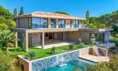Perchée au sommet d'un domaine privé parmi les plus prisés de Sainte-Maxime, cette villa neuve de 358 m² semble suspendue au-dessus de la Méditerranée. Entourée de pins parasols et bercée par le calme, elle conjugue le meilleur de l'architecture contemporaine à l?art de vivre de la Côte d'Azur. Sur un terrain paysagé de 2720 m², cette propriété se déploie avec élégance, dans une harmonie parfaite entre intérieurs lumineux et extérieurs soignés. La lumière circule librement à travers les larges baies vitrées, amplifiant les volumes et prolongeant le regard jusqu'à l?horizon marin. Le coeur de la maison bat dans une spectaculaire pièce de vie de plus de 100 m². Entre salon minimaliste, salle à manger chaleureuse et cuisine équipée aux finitions irréprochables, chaque zone trouve naturellement sa place. Une arrière-cuisine discrète et une cave à vin vitrée viennent compléter cet espace pensé pour recevoir avec raffinement. Conçue pour une vie fluide entre dedans et dehors, la villa s?ouvre sur une grande terrasse ombragée dotée d?une cuisine d?été. Un peu plus loin, une piscine à débordement borde un jardin plat et verdoyant, créant une continuité visuelle vers la mer. Côté nuit, la villa propose quatre chambres en suite, dont une spacieuse suite parentale de près de 50 m². Un garage fermé et un parking extérieur complètent les prestations de cette villa d?exception, située à moins de 15 minutes du centre de Sainte-Maxime. Une adresse rare, une atmosphère unique, un art de vivre résolument contemporain.