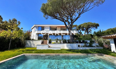 Sainte-Maxime – Villa contemporaine avec vue mer panoramique Située sur les hauteurs de Sainte-Maxime, au sein d'un domaine privé et sécurisé, cette villa contemporaine d'environ 370 m² bénéficie d'un environnement paisible et d'une vue panoramique exceptionnelle sur la mer Méditerranée, le port et la baie. À proximité immédiate des plages de la Nartelle et du centre-ville, la propriété profite d'un emplacement idéal, à la fois proche des commodités et à l'abri des regards. La villa se compose d'un vaste espace de vie lumineux, ouvert sur une grande terrasse grâce à de larges baies vitrées qui offrent une vue mer spectaculaire. L'agencement intérieur a été conçu pour valoriser les volumes et la luminosité, dans un esprit résolument contemporain. Elle dispose de six chambres confortables permettant d'accueillir famille et invités dans les meilleures conditions. L'espace extérieur, soigneusement aménagé sur un terrain d'environ 4 400 m², comprend une piscine de plain-pied avec le séjour et la cuisine, ainsi qu'un élégant patio d'entrée. La propriété offre plusieurs places de stationnement, dont trois couvertes, un véritable atout sur la Côte d'Azur. Cette villa combine une architecture moderne, des prestations de qualité et une situation privilégiée, à seulement quelques minutes du bord de mer et du centre de Sainte-Maxime. Sainte-Maxime, face à Saint-Tropez, est une station balnéaire recherchée pour son atmosphère familiale, son dynamisme et son authenticité provençale. Proposée par Côte d'Azur Sotheby's International Realty, spécialiste de l'immobilier de prestige sur la French Riviera, cette propriété d'exception offre un cadre de vie unique entre mer, nature et lumière.