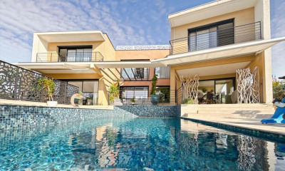 RARE - Secteur résidentiel à pieds du centre et des commerces, parfaitement au calme et bénéficiant d'une vue panoramique mer jusqu'au golfe de Saint-Tropez, cette demeure contemporaine domotisée allie des volumes généreux, lumineux, à des prestations et finitions haut de gamme. Hall d'entrée, avec vestiaire et wc invités, Séjour de 95m² avec cuisine équipée ouvrant sur la terrasse et la piscine à débordement, cuisine d'été, 2 chambre en suite avec salle d'eau, toilette, placards - buanderie, local technique/rangements et double garage. A l'étage, suite parentale avec dressing ouvrant sur une terrasse panoramique, salle de bains/douche,/wc, 2 autres chambres en suite avec placards, salle d'eau, wc. Sous sol indépendant, de 100m², utilisable en stockage, ou aménageable selon les besoins. Local piscine. Terrain de 1300 m² totalement aménagé et paysager. Des lignes épurées et une superbe vue situation recherchée