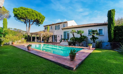 Dans le quartier du Pinet, à quelques minutes du centre de Saint-Tropez et des plages, cette bastide provençale d’environ 580 m² est implantée sur un terrain de 4 439 m². La maison principale comprend un séjour, une salle à manger, une cuisine équipée avec patio, une véranda, ainsi que cinq chambres avec leur salle de bains. Le sous-sol offre plusieurs pièces, dont une salle de sport, une cave à vin, une buanderie et un logement de gardien en cour anglaise. Une maison d’invités d’environ 80 m², avec deux chambres, est également présente sur la propriété. À l’extérieur, le jardin paysager comprend une piscine chauffée et un jacuzzi. Plusieurs abris voitures complètent le bien. Bien situé dans une zone soumise à l'obligation de débroussaillement.