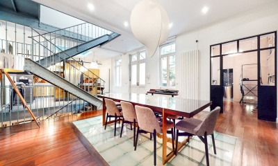 Nichée au cœur d'une cour végétalisée, cette maison, ancien lieu industriel entièrement rénovée, offre un lieu d'exception au sein d'une très élégante copropriété. Ce bien rare sur le marché parisien bénéficie de magnifiques volumes fruits d'une rénovation de grande qualité ayant préservé un style loft et industriel. Son escalier Eiffel d'origine et ses nombreuses verrières vous rappellent avec élégance son architecture d'antan. Une distribution fluide offrant une superficie totale de 290m2 dont un magnifique roof top paysagé. Un cahier des charges complet (3ch et un bureau) jouissant de tout le confort contemporain. Le dernier étage étant réservé à une terrasse et son espace détente. En complément un espace annexe au Rdc avec son point d'eau de 10 M2 et une grande cave complètent le bien. Quartier très prisé du 11ème arrondissement… Usage Mixte commercial et habitation. Venez découvrir ce véritable havre de paix à l'abri de tous les regards.! Dossier complet sur demande. PRIX HAI ; 2 800 000€