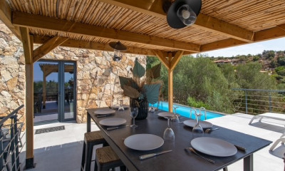 Située dans le hameau prisé de Muratello, à seulement 8 minutes de Porto-Vecchio, 15 minutes des plages de Santa Ghjulia et Palombaggia, moins de 20 minutes de l'aéroport de Figari, cette villa de plain-pied offre un cadre de vie calme, agréable et tourné vers la nature. Édifiée il y a 10 ans, la maison développe 93,92 m² habitables (loi Carrez) et est implantée sur un terrain plat de 1500 m² dont 1300 m² entièrement clôturés et sécurisés par un portail automatique. Le bien est en excellent état général, aucun travaux à prévoir. Agencement intérieur: L'entrée s'effectue par un petit dégagement menant à un espace de vie lumineux composé d'un salon, d'un coin repas et d'une cuisine équipée. Cet espace ouvert favorise une circulation fluide et s'ouvre sur une grande terrasse périphérique en bois, idéale pour profiter de la vue dégagée sur la région et les montagnes environnantes. La partie nuit comprend : * une première chambre, * un couloir équipé d'un grand placard mural, * une salle de bain complète (baignoire, douche, vasque, sèche-serviettes, cabinet de toilette), * une seconde chambre avec placard mural, * une buanderie. Prestations La villa bénéficie d'équipements modernes : * grandes baies vitrées, * volets roulants électriques, * pompe à chaleur (climatisation inverter dans la pièce principale), * spots intégrés, * chauffage par le sol (électrique). Extérieur Le terrain joliment aménagé est orné de végétation méditerranéenne et comprend un petit garage avec fermeture automatisée. La parcelle offre également la possibilité d'implanter une piscine, sous réserve des autorisations réglementaires. L'assainissement est collectif. Aucun vis-à-vis, environnement calme et campagnard tout en restant proche des commodités. Un bien rare sur le secteur, idéal pour une résidence principale comme secondaire, alliant confort moderne, tranquillité et proximité des plus beaux sites de Porto-Vecchio. Honoraires à la charge du vendeur. Classe énergie C, Classe climat A Montant estimé des dépenses annuelles d'énergie pour un usage standard : entre 1090.00 euros et 1540.00 euros sur les années 2021, 2022 et 2023 (abonnements compris). Les informations sur les risques auxquels ce bien est exposé sont disponibles sur le site Géorisques : georisques.gouv.fr.