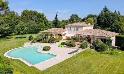 Découvrez cette superbe maison d'environ 212m² (environ 260 m² de surface utile), située dans un village très prisé au sud d'Aix-en-Provence. Nichée sur un terrain arboré d'environ 2000m², cette propriété offre un cadre de vie exceptionnel avec une vue dégagée sur le village. Cette demeure, principalement agencée de plain-pied, se distingue par son excellent état et ses espaces généreux. Elle dispose d'un vaste salon avec cheminée offrant une vue imprenable, d'une cuisine dînatoire sur mesure ouverte sur une grande salle à manger, ainsi que de quatre chambres spacieuses, dont une suite parentale. Un bureau et de belles terrasses ombragées, parfaites pour profiter des journées ensoleillées, viennent compléter cet ensemble. Pour vos moments de détente, une piscine chauffée accompagnée de son pool house vous attend, idéale pour profiter des beaux jours. Un garage de près de 50 m² est également à votre disposition. Cette maison représente une opportunité rare de vivre dans un environnement paisible et verdoyant, tout en étant à proximité des commodités et à seulement 10 minutes de la gare TGV d'Aix-en-Provence.